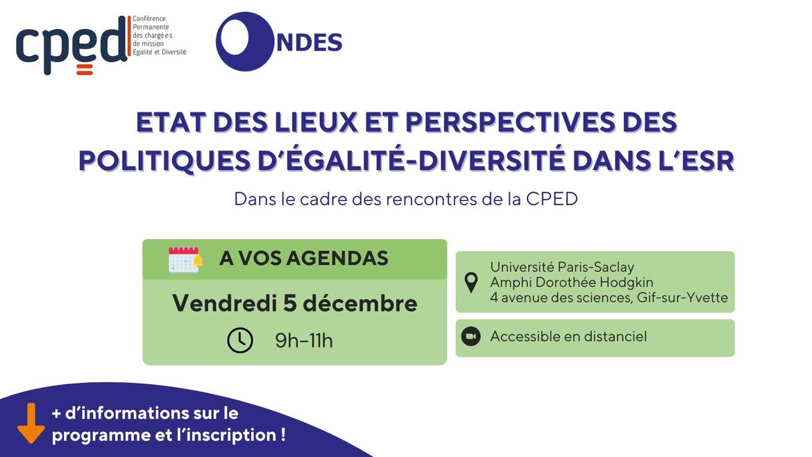 Pour s'inscrire : https://my.weezevent.com/etat-des-lieux-et-perspectives-des-politiques-degalite-diversite-dans-lesr